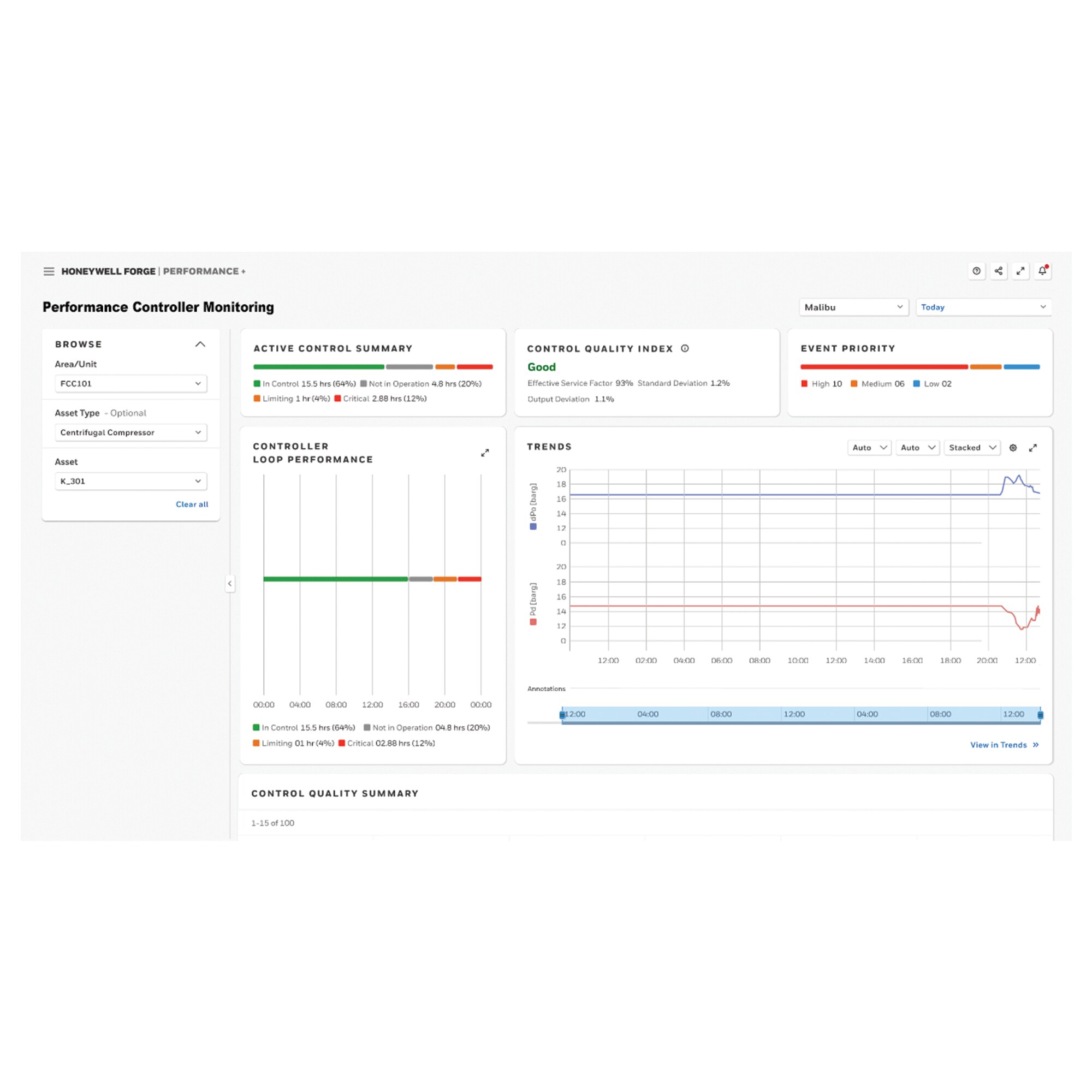 The Control Performance Module identifies control loops that are underperforming due to bvarious constraints, recommends corrective actions and provides these features: